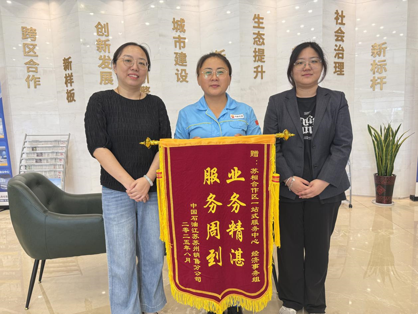 近日,蘇相合作區一站式服務中心辦事大廳內溫情滿溢,轄區企業蘇州科陽半導體有限公司、中國石油江蘇蘇州銷售分公司、蘇州華天財務咨詢有限公司的相關負責人陸續到訪,分別送上繡有暖心話語的錦旗,以真摯感謝為中心的助企服務寫下生動注腳。