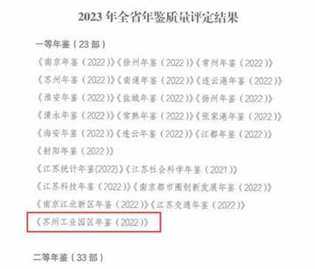 近日,省地方志辦公室通報2023年全省年鑒質量評定結果,《蘇州工業園區年鑒(2022)》獲評一等年鑒,這是繼《蘇州工業園區年鑒(2021)》獲評全市綜合年鑒質量評定一等獎后的又一重要成果。