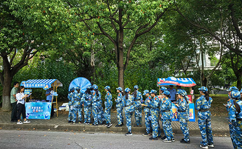 活動以“擺攤設點”的形式在校園內展開,設置了普法宣傳區、互動答題區等區域。工作人員精心布置宣傳展架,展示了中華人民共和國國家安全法、宗教事務條例、反電信網絡詐騙法、禁毒法及相關毒品種類等與學生生活息息相關的法律法規知識。互動答題區的“答題有獎”環節吸引了大批學生積極參與,學生們熱情高漲,有序排隊答題。活動中,教官帶頭參與互動,不少答錯的學生主動重新排隊挑戰,展現出濃厚的學習熱情。