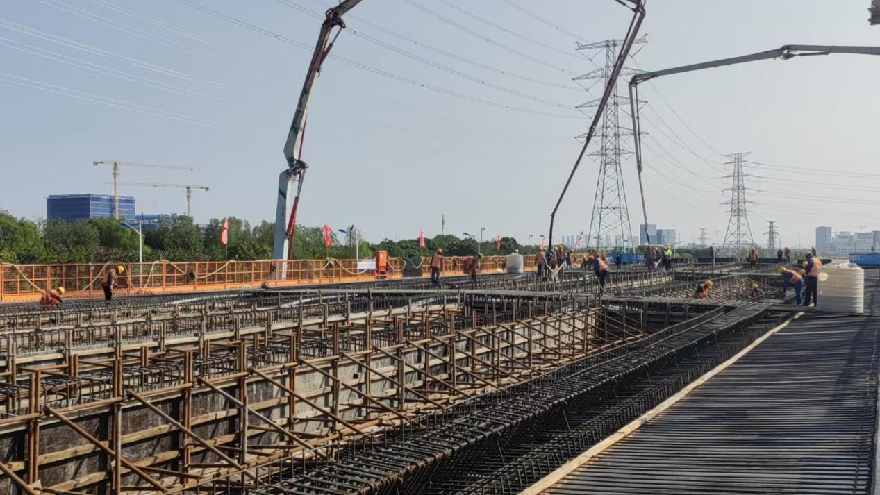 自2024年12月24日開工以來,參建各方共同努力,克服綠化遷移數(shù)量多、管線遷改難度大、交叉作業(yè)風險高等困難,統(tǒng)籌謀劃在先,利用BIM技術(shù)優(yōu)化設(shè)計,應(yīng)用標準化手冊指導(dǎo)施工,圓滿完成保通道路通車、110kV姚凌線入地等關(guān)鍵節(jié)點目標。此次主線現(xiàn)澆箱梁的混凝土澆筑,吹響了高架橋上部結(jié)構(gòu)施工“集結(jié)號”,向項目2027年10月竣工通車目標又邁出了重要一步。
