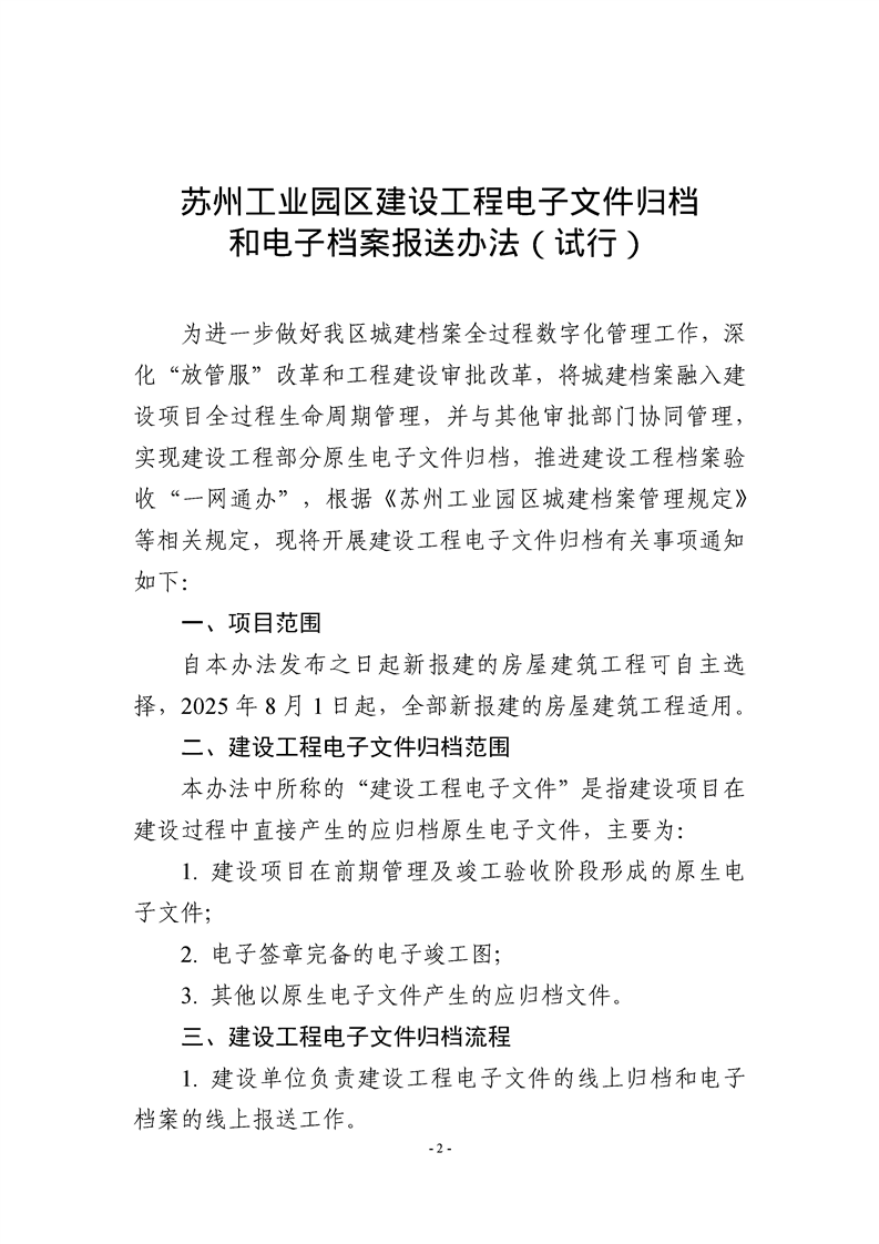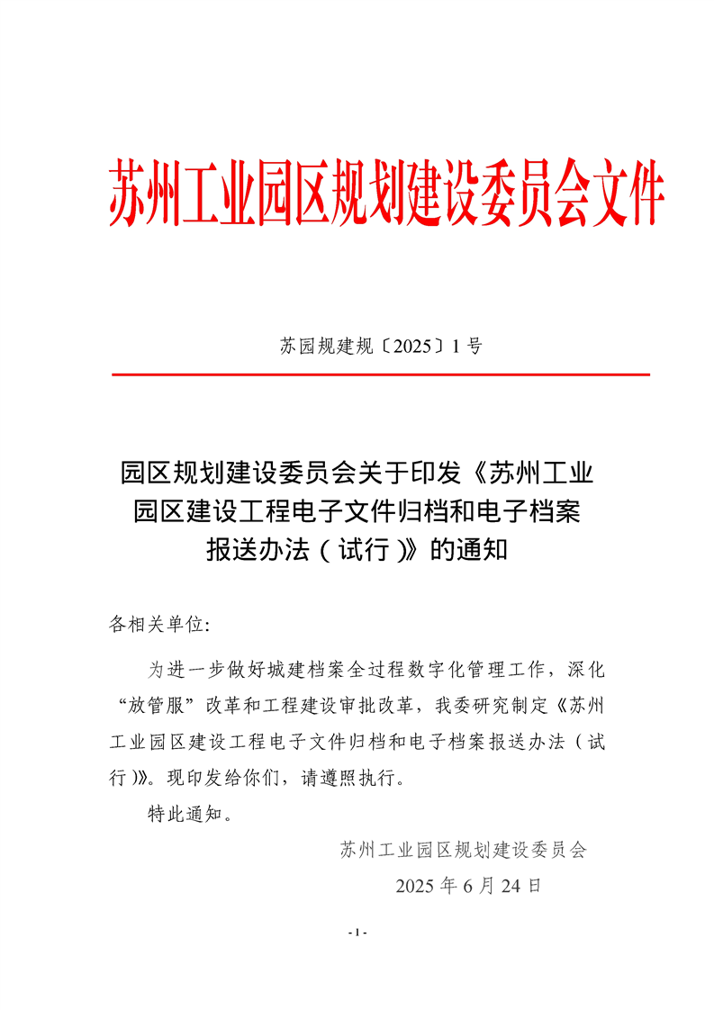 園區(qū)規(guī)劃建設(shè)委員會(huì)關(guān)于印發(fā)《蘇州工業(yè)園區(qū)建設(shè)工程電子文件歸檔和電子檔案報(bào)送辦法(試行)》的通知