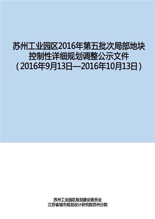 蘇州工業園區2016年第五批次局部地塊控制性詳細規劃調整公示