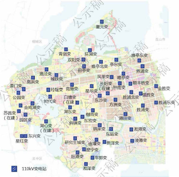 遠(yuǎn)期園區(qū)共設(shè)置110千伏變電站52座。保留現(xiàn)狀110千伏變電站14座;擴(kuò)建現(xiàn)狀110千伏變電站16座;在建110千伏變電站4座(蘇茜變、白塘變、湖心變和長(zhǎng)陽(yáng)變);規(guī)劃新建110千伏變電站22座。