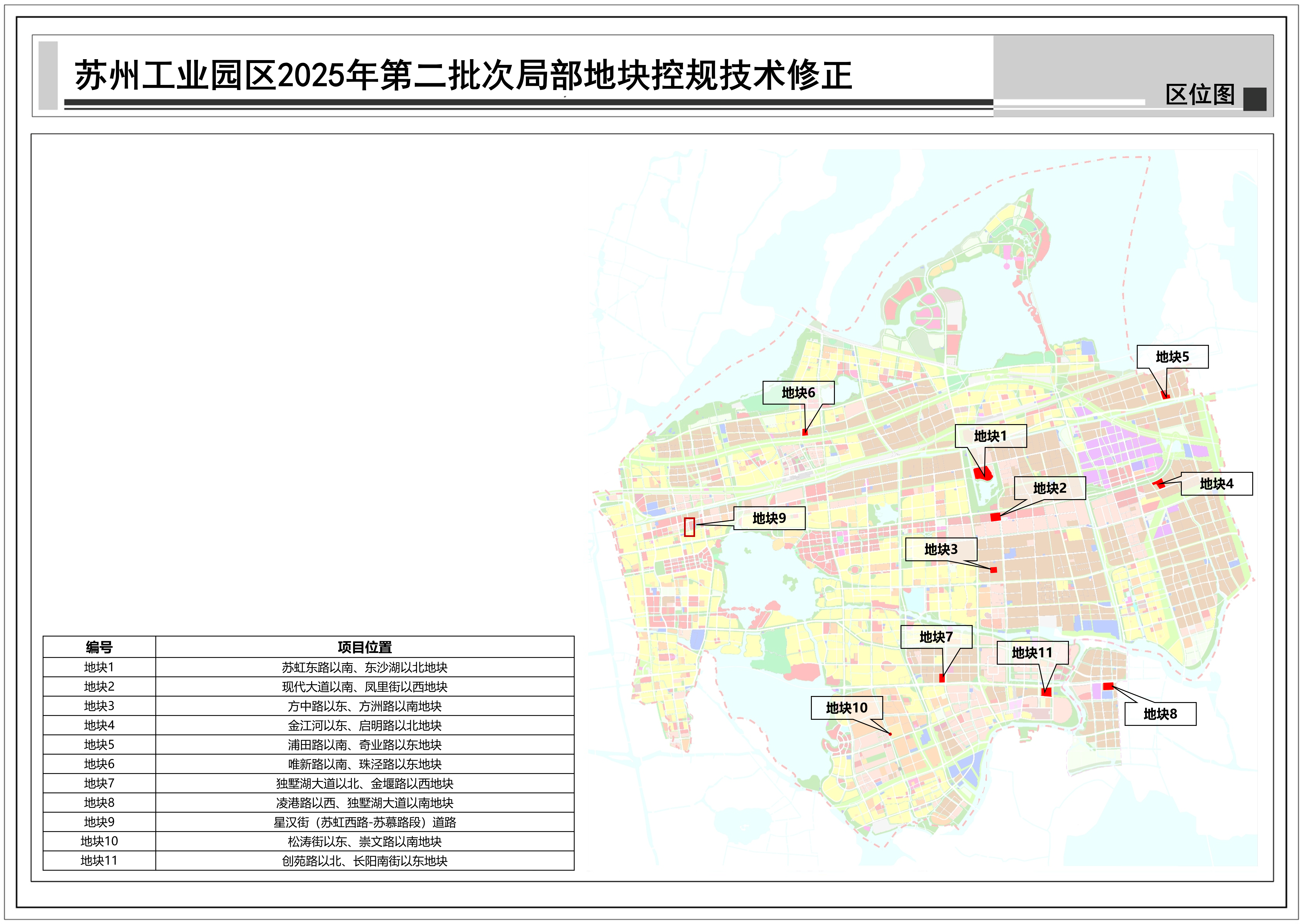 蘇州工業(yè)園區(qū)2025年第二批次局部地塊控規(guī)技術修正:共包括11個地塊,總用地面積約0.75平方公里,詳見附圖區(qū)位圖。