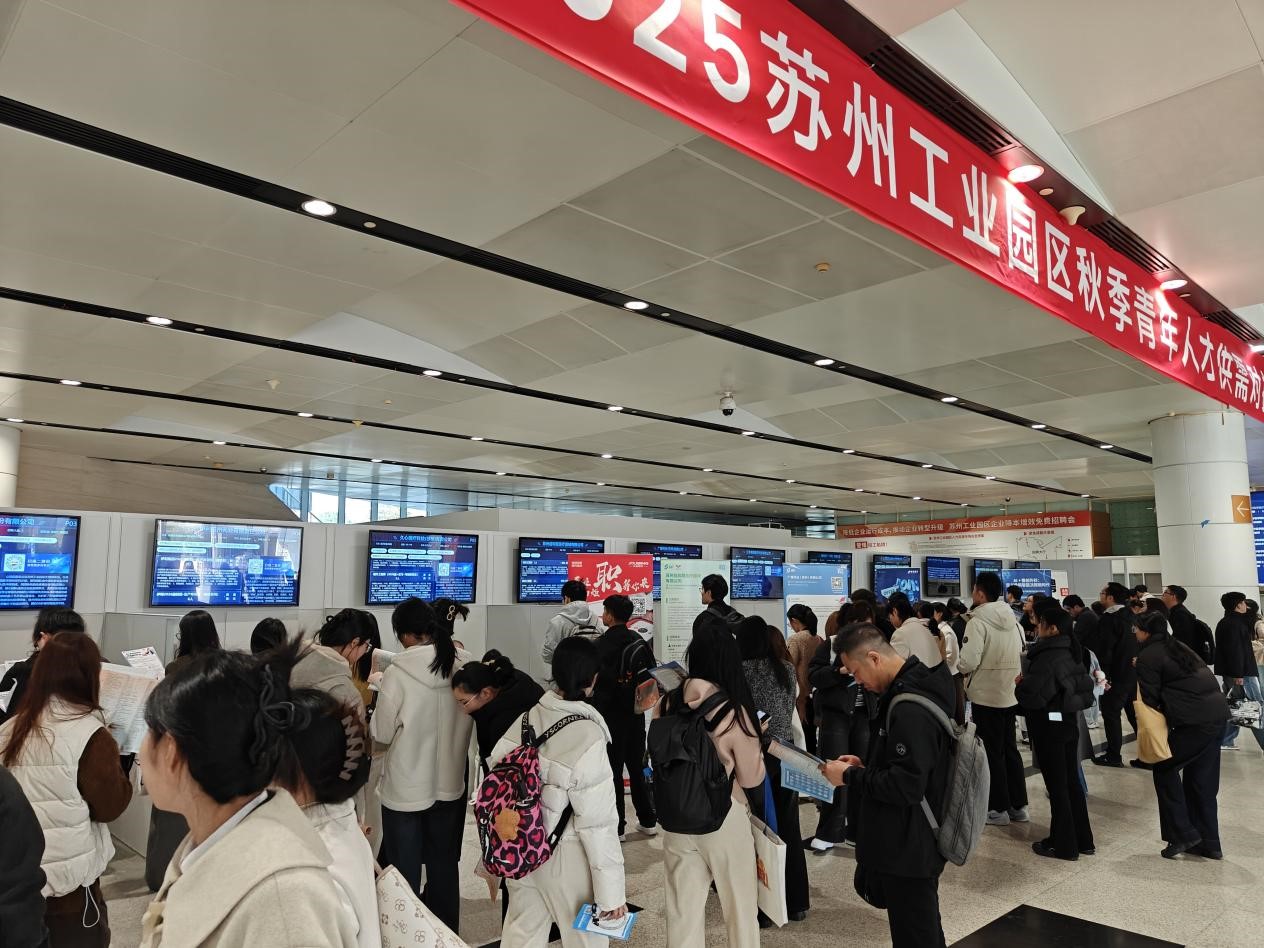 11月21日午後、蘇州工業園區2025年秋季若年層人材需給マッチング會が園區人材市場で開催された。蘇州大學、西安交通リバプール大學などの地元大學をはじめ、同済大學、東南大學など他地域の有名校から集まった延べ1000名を超える優秀な學生たちが企業と活発な交流を展開した。