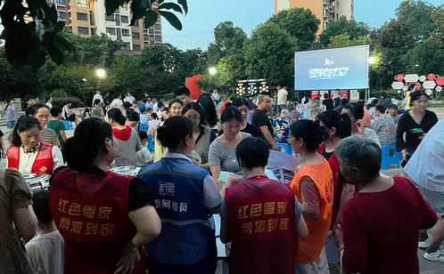“主題夜攤”“夏夜影院”“書香夜讀”“防非反詐”……入夏以來,文薈苑社區(qū)黨總支依托新時代文明實踐矩陣,立足群眾所需,創(chuàng)新服務(wù)方式,將文明實踐“點亮星夜送清涼”活動送到群眾“家門口”。依托街道文體配送項目,文薈苑社區(qū)黨總支組織轄區(qū)居民在法治廣場觀看夜電影。觀影開始前,社區(qū)紅色管家志愿者早早地將觀影設(shè)備搭建好,并為觀影的居民們免費分發(fā)綠豆湯和酸梅湯。觀影中,跌宕起伏的劇情深深打動了在場的每一位觀影者。放映結(jié)束后,居民李阿姨感嘆:“露天放映電影的形式,把大家聚在一起,讓我想起了兒時的幸福時光,這樣接地氣、有朝氣的文化活動,是我們居民夢寐以求的文明和諧、歡樂喜慶的夜生活。”