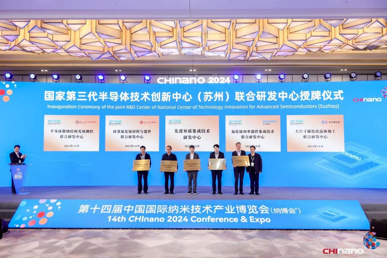 10月23日,第十四屆中國國際納米技術(shù)產(chǎn)業(yè)博覽會在蘇州工業(yè)園區(qū)開幕。開幕式上,國家第三代半導體技術(shù)創(chuàng)新中心(蘇州)重大成果發(fā)布、國家第三代半導體技術(shù)創(chuàng)新中心(蘇州)聯(lián)合研發(fā)中心授牌、一批高質(zhì)量項目現(xiàn)場簽約。