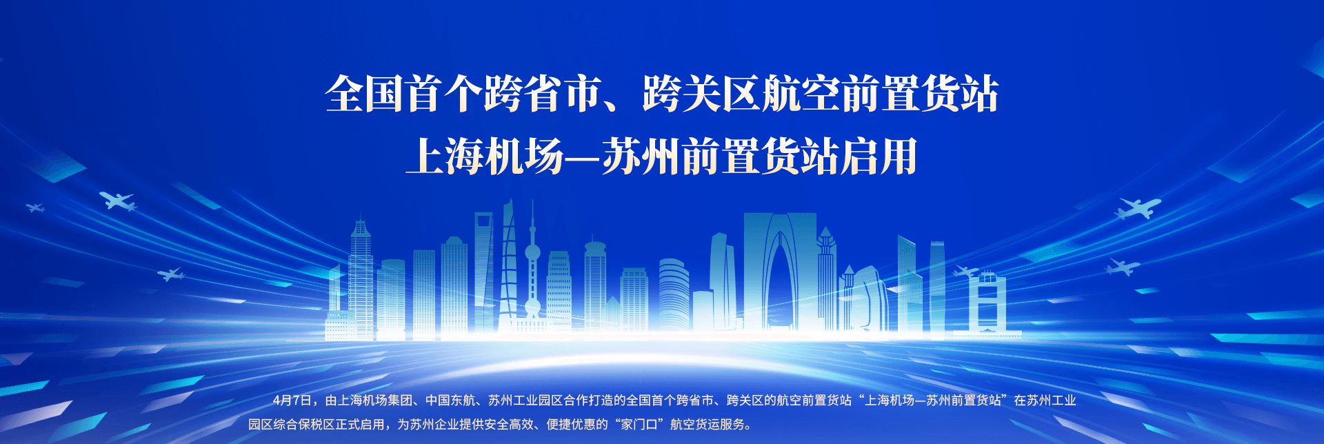 2024年,蘇州工業(yè)園區(qū)迎來(lái)開(kāi)發(fā)建設(shè)30周年,國(guó)家出臺(tái)支持園區(qū)深化開(kāi)放創(chuàng)新綜合試驗(yàn)的若干措施,明確“支持具備條件的長(zhǎng)三角區(qū)域城市機(jī)場(chǎng)在園區(qū)建設(shè)前置貨站”。在海關(guān)總署、中國(guó)民航局的大力支持下,蘇州工業(yè)園區(qū)與上海機(jī)場(chǎng)集團(tuán)、東航集團(tuán)共同打造跨省市、跨關(guān)區(qū)的航空前置貨站。