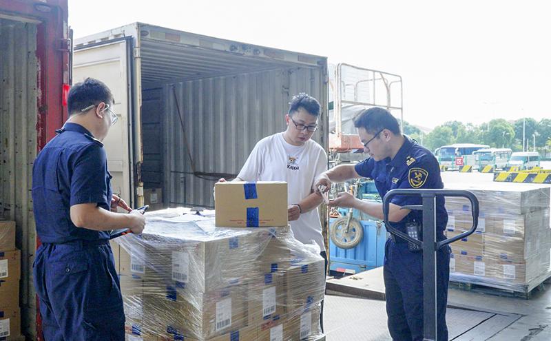 前置貨站配備獲得相關(guān)資質(zhì)的航空安檢專(zhuān)業(yè)人員,采用機(jī)場(chǎng)專(zhuān)用設(shè)備,對(duì)接上海機(jī)場(chǎng)信息化系統(tǒng),將上海機(jī)場(chǎng)的安檢和服務(wù)規(guī)范前置,也就是說(shuō),貨物在前置貨站完成安檢,駁運(yùn)至上海后不再實(shí)施安全檢查。采用轉(zhuǎn)關(guān)模式在園區(qū)完成海關(guān)查驗(yàn)操作,通過(guò)電子關(guān)鎖完成驗(yàn)封、拆封,同時(shí)加快推進(jìn)實(shí)現(xiàn)自動(dòng)驗(yàn)放、核銷(xiāo)。引入上海化工院檢測(cè)有限公司等單位,在本地為企業(yè)出具磁檢、化工報(bào)告等鑒定材料,無(wú)需再至上海辦理。