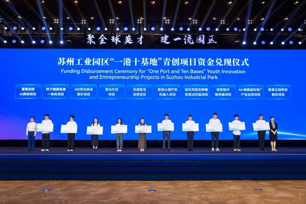 青年是城市發(fā)展的活力源泉。開幕式上,園區(qū)“一港十基地”青創(chuàng)項目資金正式兌現(xiàn),為“一港十基地”項目路演一二三等獎及優(yōu)勝獎等10個獲獎項目兌現(xiàn)青創(chuàng)資金。今年3月,園區(qū)發(fā)布“園夢未來”青年人才創(chuàng)新創(chuàng)業(yè)三年行動計劃,打造“一港十基地”青創(chuàng)空間,新設(shè)1億元青創(chuàng)資金專項用于遴選青年人才項目。新政實施以來,累計舉辦56場青創(chuàng)活動,改造4個人才社區(qū),發(fā)放415張人才房票,補貼金額超5300萬元,引進(jìn)青年人才超4萬人。