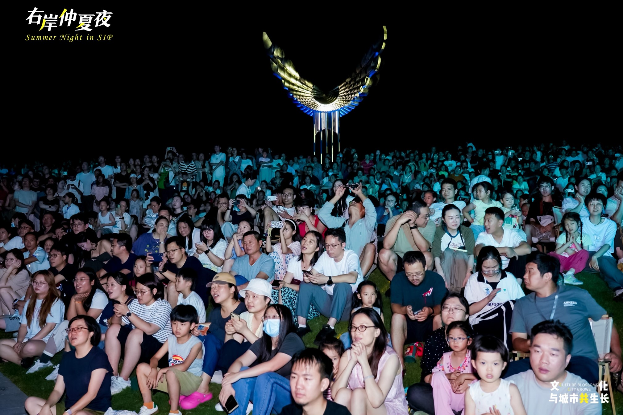 “右岸仲夏夜”推出二期,已成長為園區嶄新的文化IP,不僅為市民奉上豐盛的精神盛宴,更成為展示區域文旅魅力的閃亮名片。“我帶孩子來這邊散步納涼,沒想到碰上這么精彩的演出。”市民趙女士說道,“現在的園區既有煙火氣,又充滿藝術范兒,周末遛娃、全家放松再合適不過。”“全民、全齡、全域、全時”的理念,讓藝術融入湖畔晚風,成為群眾夏夜消暑納涼的好去處。