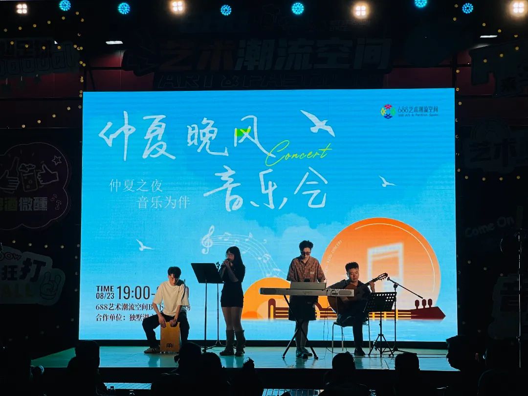 由688藝術(shù)潮流空間與蘇州獨(dú)墅湖文體聯(lián)合打造的“仲夏晚風(fēng)音樂會(huì)”浪漫開唱。國(guó)家級(jí)吉他演奏家與本地原創(chuàng)音樂人輪番登場(chǎng),古典名曲與城市故事在天然聲場(chǎng)中交織回響,陌生人群因音樂相連,為夏夜增添了溫暖與感動(dòng)。
