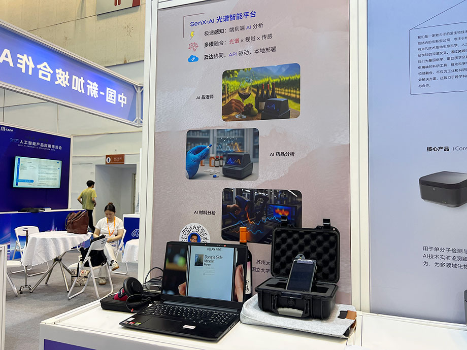 不用品嘗,如何快速了解葡萄酒的產地、品質?太赫信息科技的光譜+AI解決方案就能快速“解題”。“我們的‘AI品酒師’,通過便攜式光譜設備,結合譜的數據、AI算法,能夠對酒的風味、產地進行快速分析和判斷。這種無損檢測對消費者而言可以更好地選擇喜歡的酒,對酒莊而言則能夠在釀造過程中更好地調控風味、提升品質。”公司創始人兼CEO張楠介紹,太赫信息科技是新加坡國立大學蘇州研究院的孵化企業,此次展會除了“AI品酒師”,還帶來了AI藥品檢測、AI材料分析兩個將先進人工智能算法與光譜分析技術深度結合的產品。其中AI藥品檢測已經用于公共安全行業對危險藥品、受管制藥品的快速識別,AI材料分析則在風電葉片等復合材料的缺陷識別中擔當起在線級別檢測的重任。