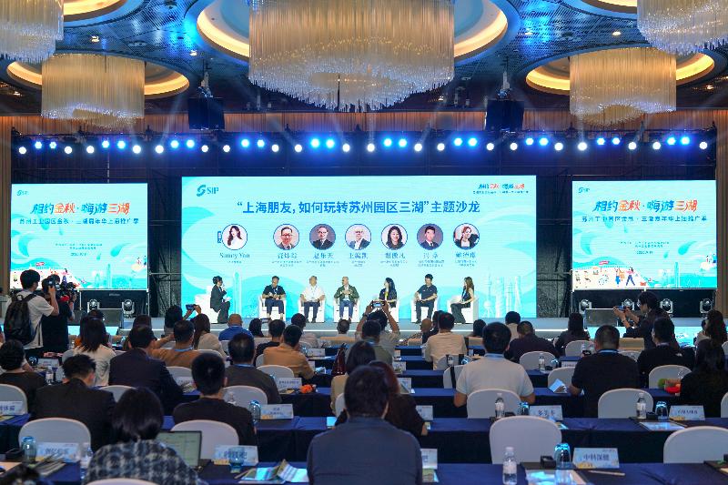 9月19日,由蘇州工業園區文體旅游局、園區商務局共同主辦的“金秋?三湖嘉年華”上海推廣季在上海中心大廈舉辦。活動以“相約金秋?嗨游三湖”為主題,通過精彩的文旅推介和豐富的互動環節,充分展現園區三湖的獨特魅力,并推出多項惠民禮遇,向上海市民發出誠摯的秋日邀約。園區黨工委委員、管委會副主任、宣傳部部長朱江出席活動。上海市旅游行業協會及各區旅游協會的會長代表,上海錦江、春秋、中青旅等頭部旅行商負責人,攜程、同程、美團、飛豬等文旅電商企業代表,多位文旅、生活類知名KOL,以及上海知名研學機構、旅游俱樂部、招商合作單位、重點合作企業代表等參加活動。