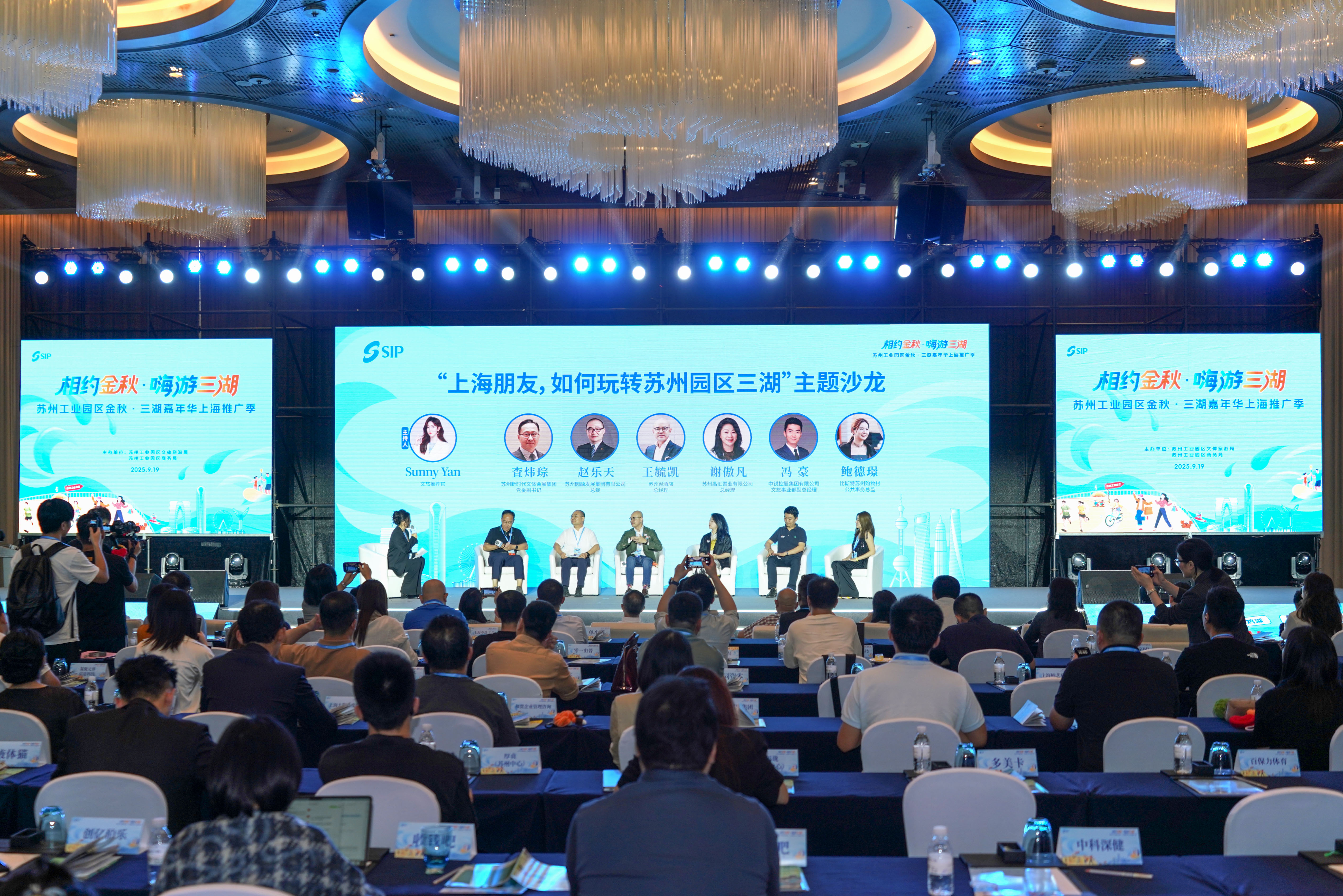 主題沙龍環節,知名旅行博主Sunny Yan與6位園區企業代表,圍繞“上海朋友,如何玩轉園區三湖”展開對談,新時代、圓融發展、W酒店、蘇州中心、摩天輪、比斯特等企業、載體圍繞各自亮點,為上海市民提供更深度、更實用的游玩攻略。在Sunny Yan看來,蘇州工業園區就像一個寶藏盒,裝滿了各種玩法。“金秋?三湖嘉年華期間,園區提供了豐富的文旅游玩路線和活動,不同年齡段的群體,以及情侶、親子等特定客群,都可以找到各自的游玩方式,非常推薦。”