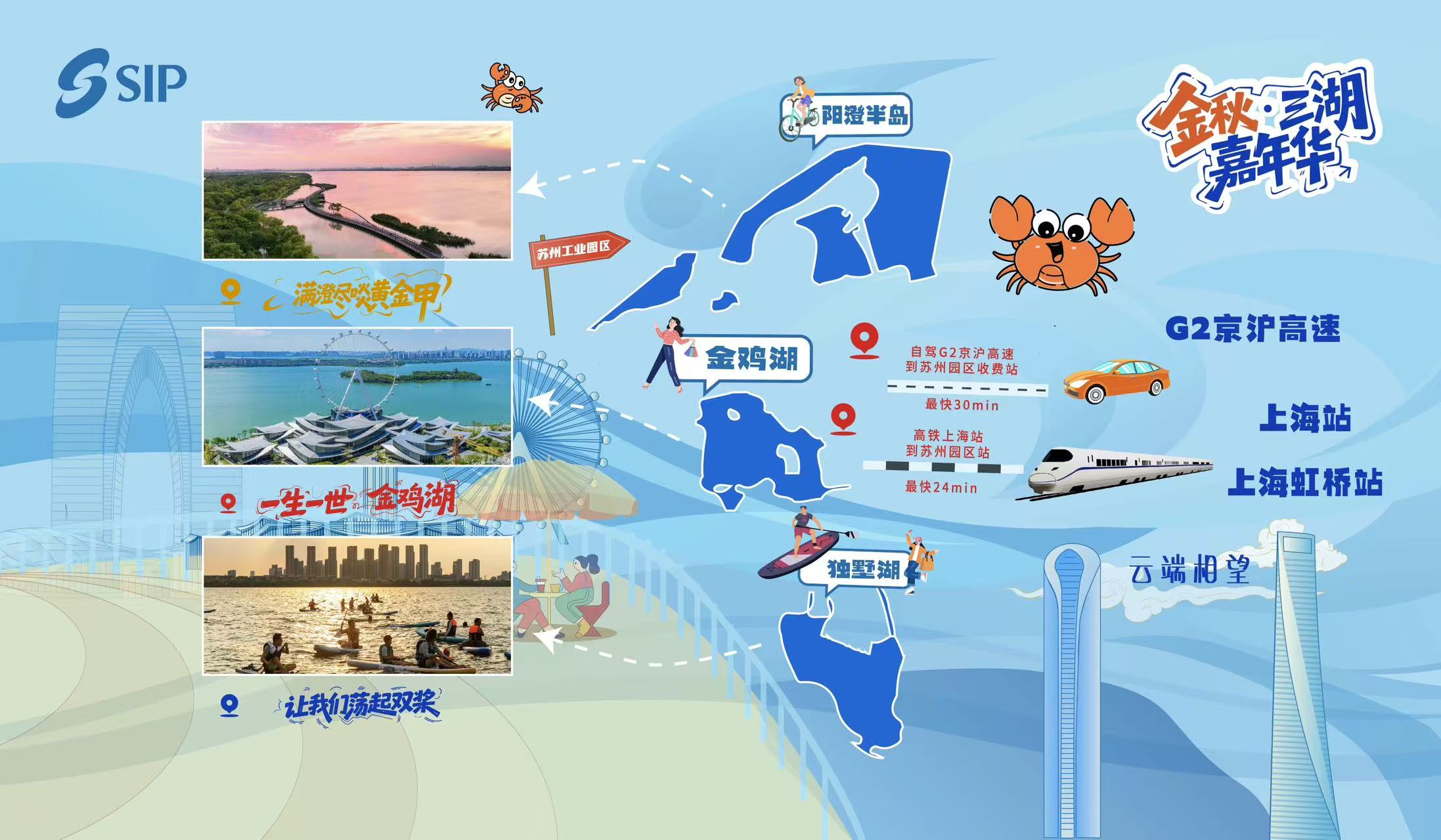 誠(chéng)如SunnyYan所言,園區(qū)三湖既有臨水親民的共性,又有獨(dú)具特色的風(fēng)情。此次“金秋·三湖嘉年華”,園區(qū)除了在陽(yáng)澄湖畔打造“滿(mǎn)澄盡啖黃金甲”主題系列活動(dòng),還充分彰顯金雞湖、獨(dú)墅湖的魅力。