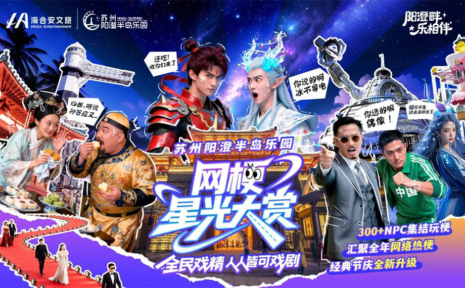 此外,蘇州陽澄半島樂園還推出網梗星光大賞,入場即走星光紅毯,與百位NPC互動狂歡,結尾開啟全民音樂派對。最新熱梗集結,拍照打卡、即興互動,每個人都是戲劇主角。