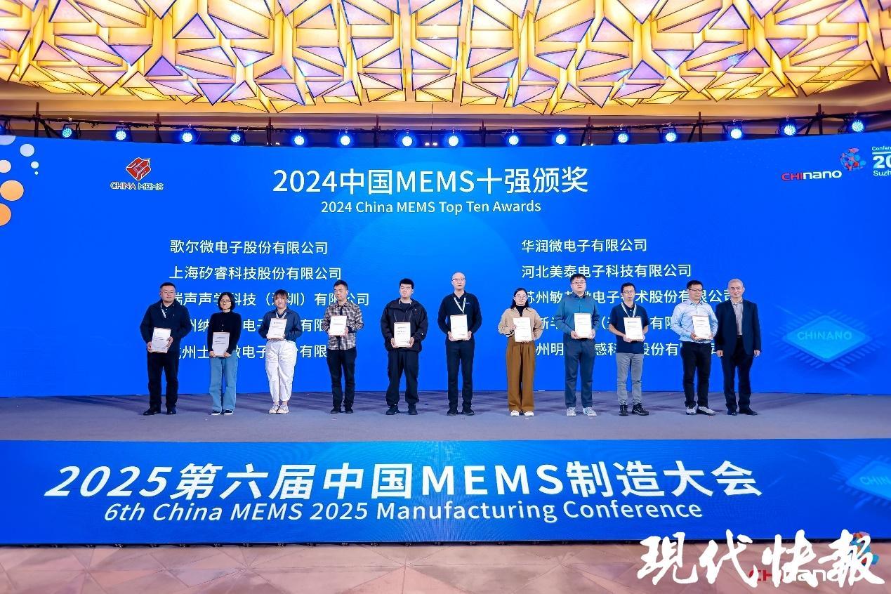 活動為2024中國MEMS十強企業頒獎。作為行業創新發展的“排頭兵”,十強企業以技術突破與產業貢獻為MEMS領域注入強勁動能,其成長軌跡也見證了國內MEMS企業的壯大歷程。其中,蘇州敏芯微電子技術股份有限公司、蘇州納芯微電子股份有限公司、蘇州明皜傳感科技股份有限公司三家企業均來自蘇州工業園區,彰顯園區在MEMS產業領域的雄厚實力。