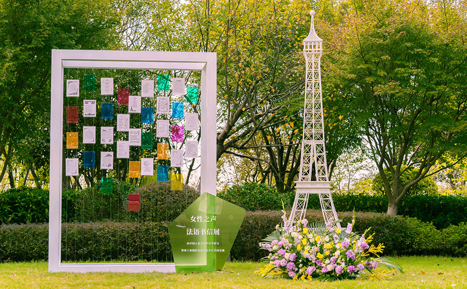 展覽區(qū)里,園區(qū)公共文化中心與中國(guó)人民大學(xué)中法學(xué)院攜手打造的“女性之聲”法語(yǔ)書(shū)信微展,用書(shū)法美學(xué)重構(gòu)法語(yǔ)語(yǔ)言魅力,將文字升華為視覺(jué)藝術(shù),呈現(xiàn)了別具韻律的線(xiàn)條之美。