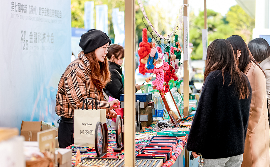 11月19日至20日,第七屆中新(蘇州)數字金融應用博覽會、2025金融科技大會在蘇州國際數據港召開。一場融合傳統韻味與數字活力的金博會數字金融市集同步熱鬧開市。市集以非遺手作、蘇式美食、數字潮玩等吸引大批市民駐足。在“數字金雞湖”平臺的全流程支持下,將金融科技的便捷融入逛展點滴。