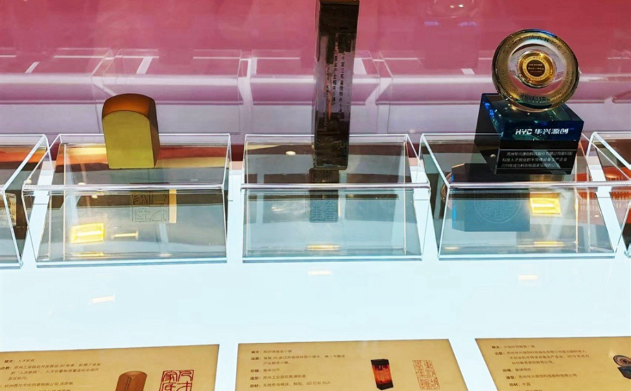 勝浦街道還展示了“國際學校”和“東沙湖基金小鎮”兩枚印章。“國際學校”取材于蘇州新加坡外籍人員子女學校,象征園區教育的開放與包容;“東沙湖基金小鎮”以透明樹脂與燈光結構展現金融流動的城市活力,是江蘇省首批省級特色小鎮中唯一以基金產業為核心的小鎮。
