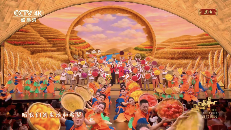 在北京主會場《來曬秋》節(jié)目中,農(nóng)民合唱團(tuán)帶著豐收的喜悅登上春晚舞臺,沉甸甸的笸籮、金黃的稻穗、火紅的辣椒繪就秋收好“豐”景,質(zhì)樸歌聲與濃濃年味打動人心。晚會以真摯情懷歌頌時(shí)代發(fā)展、唱響人民幸福生活,背后是導(dǎo)演組在節(jié)目編排、舞臺呈現(xiàn)、技術(shù)融合上的精益求精,全力打造一臺貼近生活、溫暖人心的“人民的春晚”。