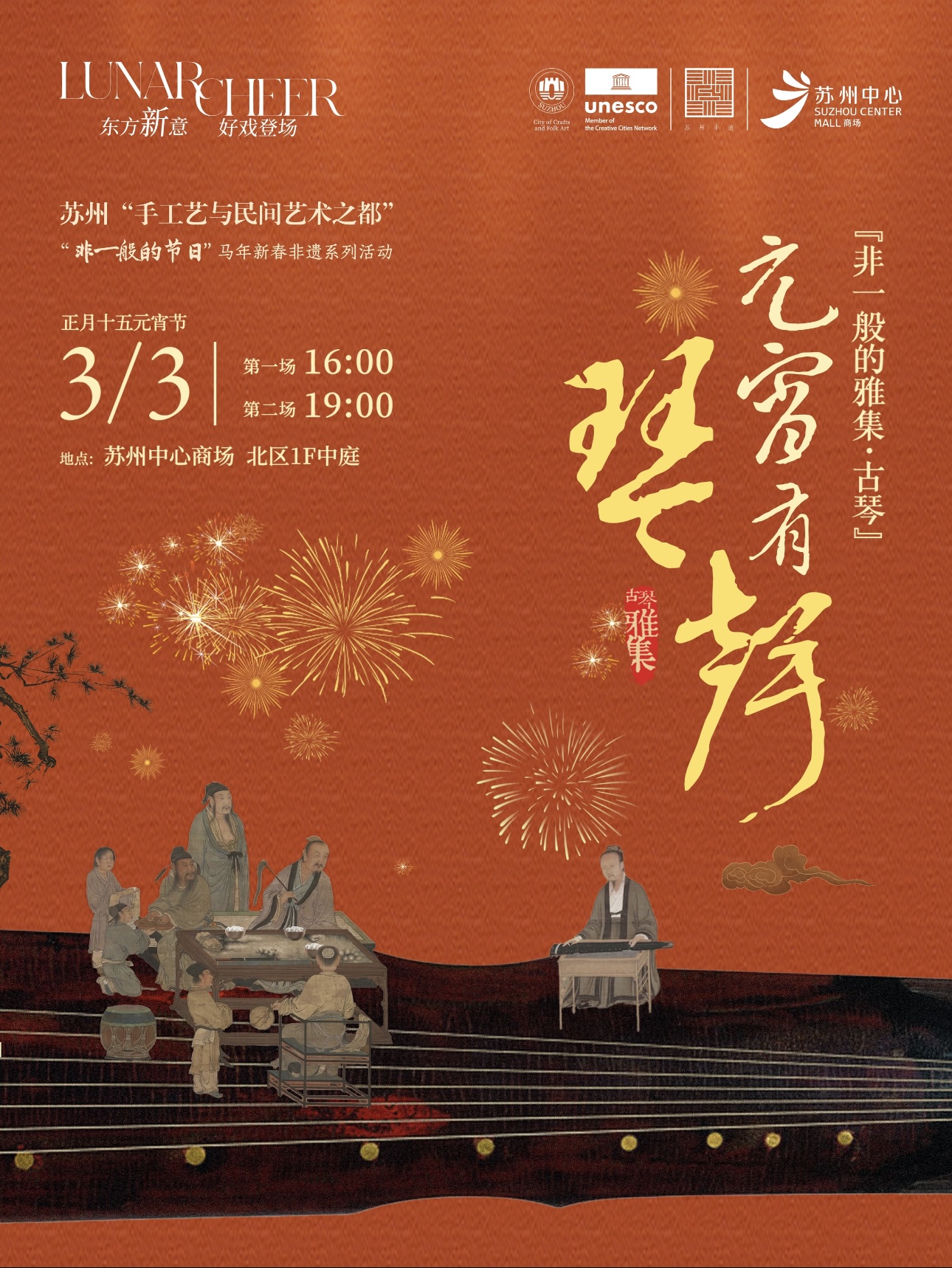 3月3日,蘇州中心商場北區一樓中庭將舉辦“非一般的雅集?古琴”專場。指尖輕撥,清音流轉,邀市民與游客共赴一場滌蕩心靈的聽覺雅集。現場將奏響《賽馬》《梅花三弄》《上春山》等經典曲目,共設兩場演出,分別于16:00、19:00開場。元宵佳節,不妨移步蘇州中心,聽一曲清音入耳,共賞雅韻。