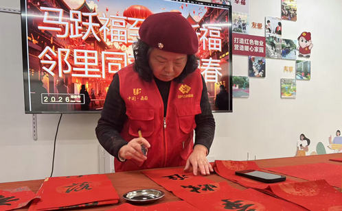 此外,社區開展新春寫字活動,邀請書法愛好者現場揮毫潑墨,為居民送上專屬的新年祝福。活動現場,紅紙鋪展,墨香浮動。書法愛好者們凝神靜氣,一停一頓、一起一落間,個個飽滿靈動的便躍然紙上或端莊敦厚,或清秀飄逸各具風骨,皆蘊吉祥。居民們有序排隊領取,將這份手寫的溫度迎回家中接過“福”字的人們笑意盈盈,紛紛表示,手寫的福字不僅聞得到墨香,更品得出傳統文化的厚重溫潤。