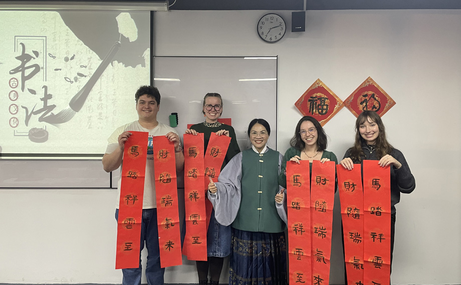 除了美食與游戲,文化體驗同樣不可或缺。春節前,SKEMA商學院還組織了多場書法體驗活動,寫春聯、寫福字備受歡迎。在墨香縈繞的教室里,外籍學子們從執筆姿勢學起,一點一橫、一撇一捺地模仿漢字的結構與神韻。紅紙鋪開,一個個真誠的“?!弊?、一幅幅寓意吉祥的春聯陸續誕生。學生們興奮地與作品合影,感受著中國人以筆墨寄托對新春美好期盼的獨特傳統。