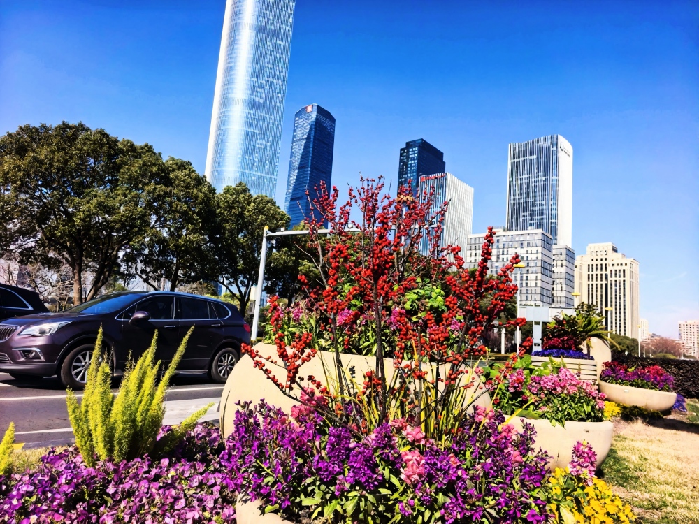 花藝造景的精致裝扮,讓園區的新春景致更顯靈動多姿。市政集團精心推進節日掛花、造景工作,重點打造金雞湖大橋、金雞湖人行棧橋、蘇州大道及飛翔雕塑等核心點位的花藝景觀。造型別致的花藝裝飾與橋梁、道路、雕塑相映成趣,成為園區的新春打卡點。此外,園區草花已全面完成冬季養護更新,路口草花區域每日安排專人開展巡視、澆水、修剪等管護工作,五彩斑斕的草花讓園區步步有景、處處生情。