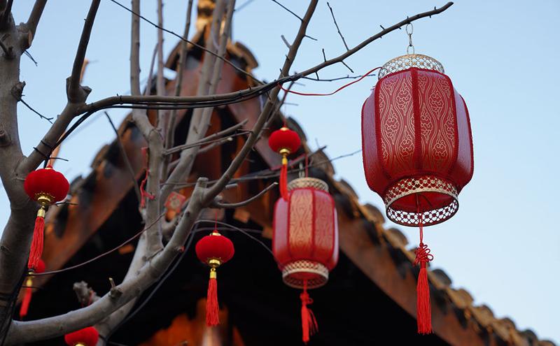 在斜塘老街,各式各樣的燈籠與傳統的蘇式建筑相得益彰,為原本因季節更迭而顯得枯寂的樹木點綴上鮮艷的色彩。