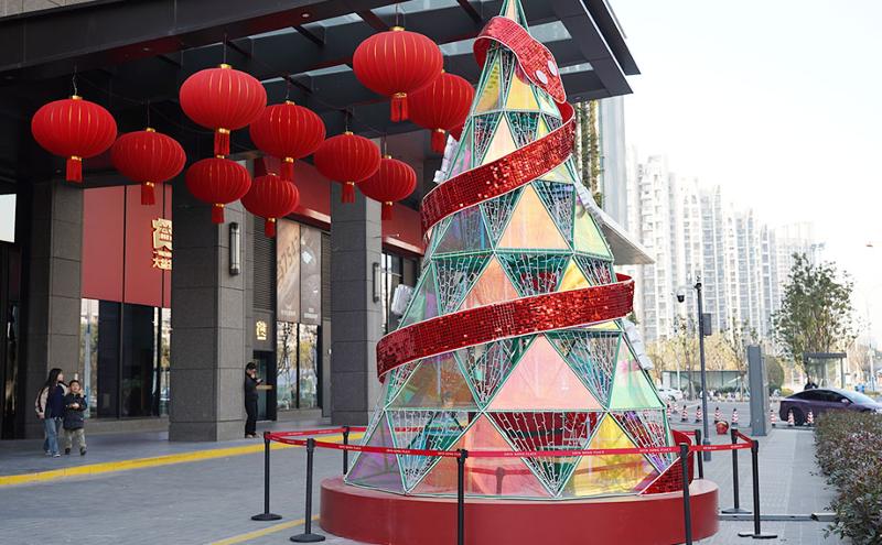 在蘇州中心商場,被古人賦予美好寓意的中國結以靈蛇造型在一樓中庭驚艷亮相,帶來“靈蛇繞福,凝心啟運”的新年祝福,靈蛇的體態蜿蜒流暢,與中國結的線條完美融合,形成了獨特的視覺美感。