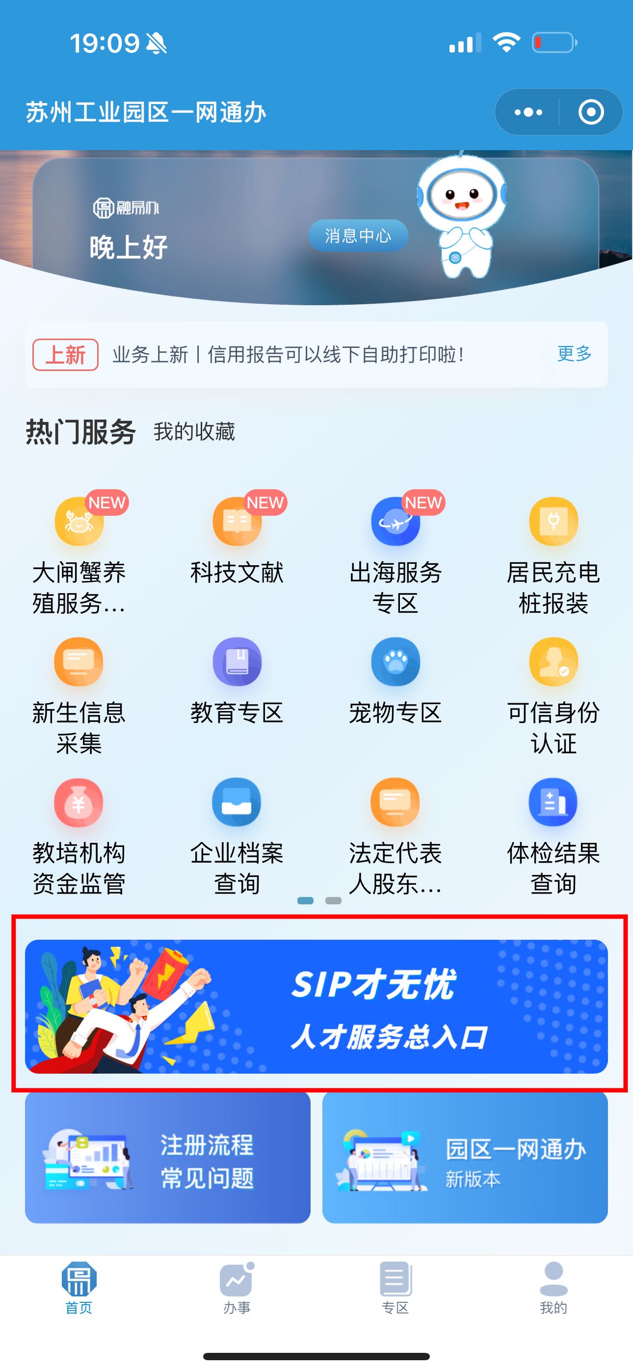 方式二:關注“蘇州工業(yè)園區(qū)發(fā)布”微信公眾號,點擊下方“一網(wǎng)通辦”菜單欄,進入后點擊“SIP才無憂”人才服務總入口。
