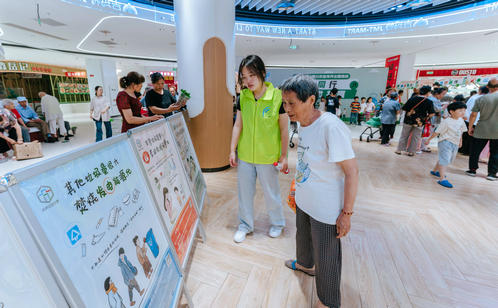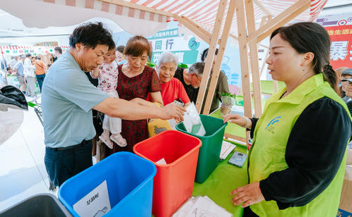 趣味游戲區的創意設計亮點頻出。居民們手持打卡地圖,穿梭于“垃分視力”“分類大轉盤”“綠色補給站”等八大互動點位,通過趣味測試、知識問答、投擲游戲等方式邊玩邊學。“‘瓶’什么都給我”專區人氣爆棚,居民王阿姨用積攢的飲料瓶兌換了綠蘿,笑得合不攏嘴。“城投再生”“綠色補給站”和“舊物煥新”專區也深受居民青睞,居民們拎著紙箱、舊衣物排隊兌換環保袋、文具等實用物品,直觀感受到“垃圾是放錯位置的資源”。游戲化體驗不僅提升了垃圾分類知識的趣味性和互動性,更讓居民在輕松愉悅的氛圍中掌握分類技巧、提升環保意識。針對還不太熟悉如何正確分類的居民,志愿者則一對一講解垃圾分類知識,實現寓教于樂“零距離”。此外,志愿者們還同步宣傳倡導“光盤行動”“限塑”“減少使用一次性用品”等源頭減量、簡約適度的生活方式。
