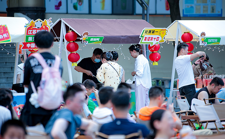 “近期,‘蘇超’聯賽持續火爆。我們以‘體育+美食+夜經濟’為核心,融合球迷觀賽、地方美食、文化展示等內容,豐富文體旅聯動產品,希望以賽事帶動消費,讓市民在觀賽之余享受美食、互動的樂趣,提升看賽體驗感。”現場相關負責人表示,未來,園區還將結合更多體育IP,推出類似活動,持續激活夜間經濟活力。