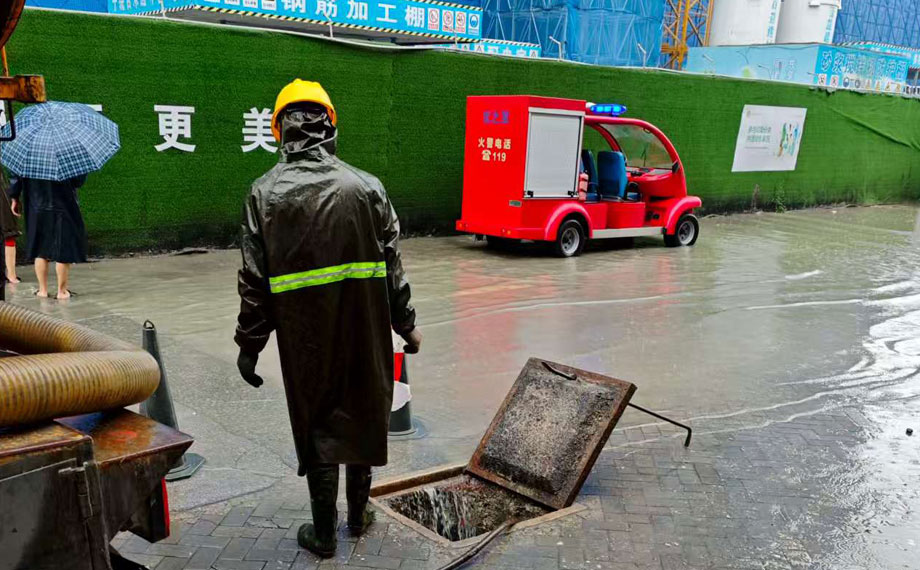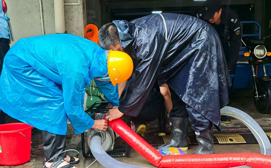在金雞湖街道貴都社區,社區工作人員針對二期車庫這一重點,聯合物業提前部署,精準施策,在車庫入口處,配備大功率抽水泵,以便及時排除可能的積水威脅,為業主的財產安全撐起“保護傘”。其他各社區也整合物業、志愿者等多方力量,聚焦地下車庫、雨污水井、排水管網等關鍵部位,加強排查、疏通和清理,確保雨情第一時間響應、險情第一時間處置。