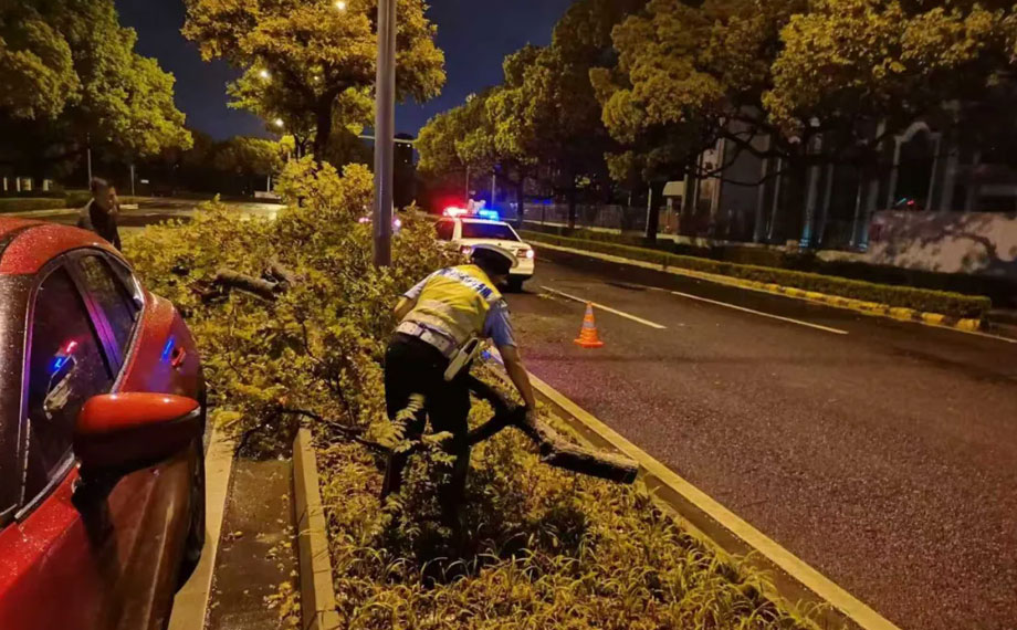 “竹節草”來勢洶洶,給出行帶來極大不便。園區公安警力始終堅守崗位,風雨中疏導交通,保障道路有序,遇到受困群眾,及時伸出援手,提供暖心救助。