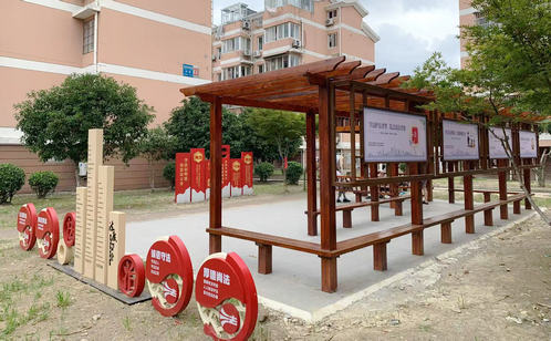 為填補(bǔ)社區(qū)法治文化陣地空白,讓居民在家門口便捷學(xué)法,淞漁社區(qū)打造的法治文化新空間“法治文化長(zhǎng)廊”完成建設(shè)并正式投入使用。長(zhǎng)廊內(nèi)懸掛“維護(hù)法律權(quán)威,共建法治社區(qū)”“學(xué)法人人受益,守法人人和諧”等鮮明標(biāo)語(yǔ),打造抬頭可見的法治文化環(huán)境,并特別增設(shè)法治主題微景觀區(qū),巧妙融入“法”字、窗花、法律名稱等元素,形成兼具教育性與觀賞性的小型景觀帶,讓法治長(zhǎng)廊成為提升社區(qū)法治氛圍的重要陣地。為回應(yīng)居民休憩議事需求、挖掘集體記憶潛力,淞源社區(qū)積極探索援法議事新實(shí)踐,依托承載居民情感的百年香樟,打造了集休憩、議事、普法功能于一體的“香樟樹下議事園”。在保留原有自然風(fēng)貌基礎(chǔ)上,園內(nèi)增設(shè)桌椅、遮陽(yáng)棚、信箱等便民設(shè)施,將自發(fā)聚集點(diǎn)升級(jí)為功能完善的公共空間。同時(shí),社區(qū)創(chuàng)新設(shè)置援法議事機(jī)制,使該園成為社區(qū)協(xié)商、依法解決身邊事的實(shí)踐平臺(tái),讓這處充滿溫度的議事空間成為法治精神融入基層治理的新載體。