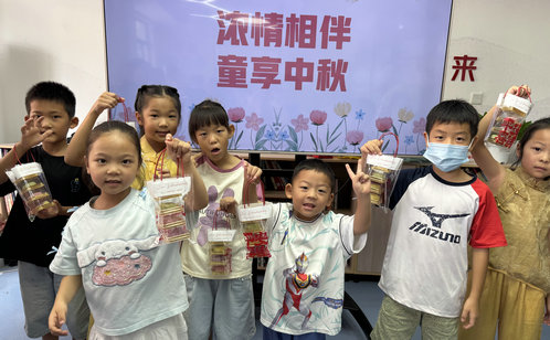 社區二樓活動中心歡聲笑語不斷,“濃情相伴童享中秋”親子活動吸引30余組家庭參加。