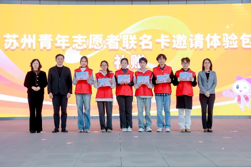 為回饋志愿者的無私奉獻、激發更多人參與志愿服務的熱情,活動為2025年大型賽會青年志愿者骨干代表贈送蘇州青年志愿者卡邀請體驗禮包。這張“公益身份證”兼具志愿精神內涵和蘇式美學顏值,集公交優惠、熱門景區暢游、消費減免、實習機會等禮遇于一身,以一座城的誠意,回饋青年志愿者的熱忱。