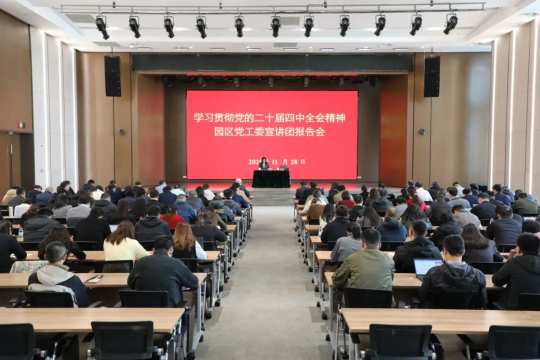 11月28日,學習貫徹黨的二十屆四中全會精神園區黨工委宣講團報告會在納米公司舉行。