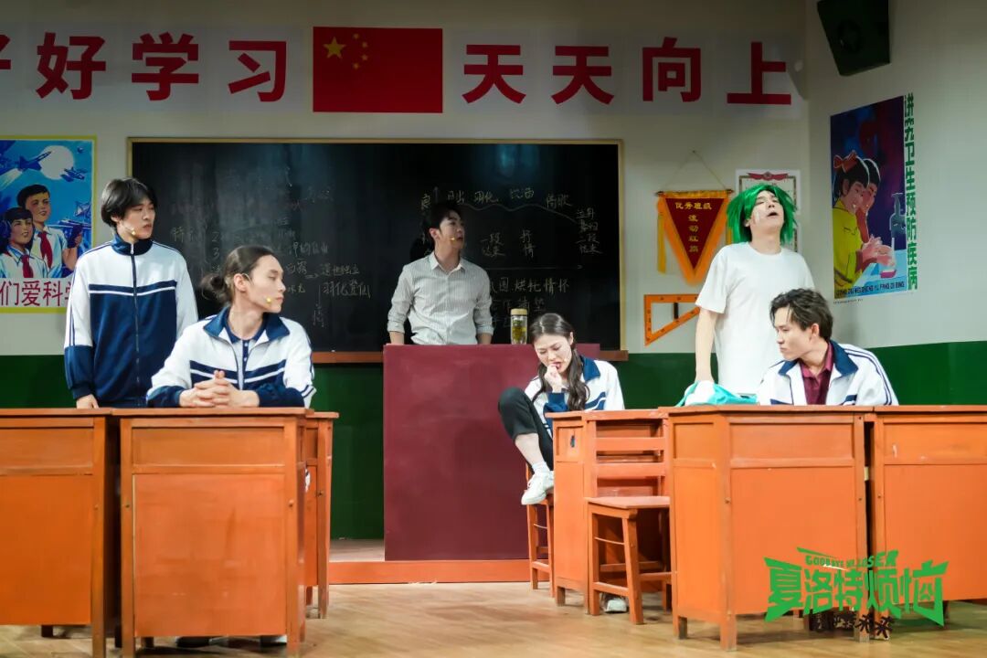 作為亮點之一,演出將觀眾直接置于劇情之中——整個劇場被“模擬”建設為“西虹市第一中學”:從懷舊小賣部到教室走廊,演出布景延展到觀眾區,實景細節遍布劇場內外。每一位觀眾憑“入學通知書”入場,在入座時便已成為“三年二班”的一員。演出過程中,演員的表演區域與觀眾席之間的界限被打破——王老師的提問可能突然落在某位觀眾身上,夏洛的窘境或許就在鄰座上演。每場隨機掉落的“秋雅位”更將為幸運觀眾帶來專屬互動橋段,讓人真正置身于歡笑與回憶交織的青春現場,打造獨一無二的觀劇體驗。