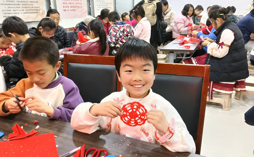 走進(jìn)東港家怡社區(qū)活動(dòng)室,剪紙與湯圓制作同步展開,傳統(tǒng)手藝在指尖流轉(zhuǎn)。“紅管”志愿者現(xiàn)場(chǎng)傳授剪紙技藝,紅紙折疊翻轉(zhuǎn),剪刀靈活游走間,一只活靈活現(xiàn)的兔子便躍然紙上。居民們也紛紛拿起剪刀,全神貫注地投入創(chuàng)作。隨著紙屑徐徐落下,一幅幅寓意吉祥的作品呈現(xiàn)在眼前——有的剪出形態(tài)各異的“春”字,有的剪出馬年生肖圖案,還有傳統(tǒng)的“福”字和如意窗花。大家迫不及待地展示自己的作品,滿堂歡騰。