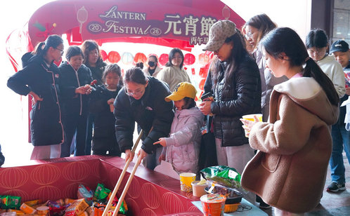 夏家橋社區(qū)的趣味游戲區(qū)人頭攢動(dòng),“夾元宵”攤位前居民手持長(zhǎng)筷穩(wěn)準(zhǔn)輕夾,“元宵五子棋”則更具挑戰(zhàn),新穎玩法引得圍觀居民陣陣歡呼。新蘇社區(qū)的“抖抖元宵大戰(zhàn)”點(diǎn)燃全場(chǎng)熱情,孩子們腰間系盒,通過扭動(dòng)身體將彩球抖出,家長(zhǎng)在旁加油助威,歡笑聲不絕于耳。葑誼社區(qū)的戶外游戲區(qū)里,不倒翁森林、抖乒乓球等項(xiàng)目,讓孩子們?cè)阪覒蛑绣憻拕?dòng)手與協(xié)作能力。一靜一動(dòng)間,鄰里情誼悄然升溫,社區(qū)的凝聚力也愈發(fā)堅(jiān)實(shí)。