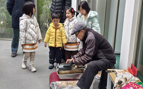 糖畫攤前最熱鬧,手藝人舀起糖稀,手腕輕轉(zhuǎn)間便畫出飛鳥走獸,孩子們舉著糖畫舍不得下口。糖葫蘆和棉花糖攤位也沒閑著,紅彤彤山楂裹上糖衣,棉花糖機嗡嗡作響,空氣里彌漫著焦糖甜香。這些承載童年記憶的傳統(tǒng)小吃,讓年味在舌尖延續(xù),也為即將開啟的志愿服務(wù)月增添了溫馨底色。