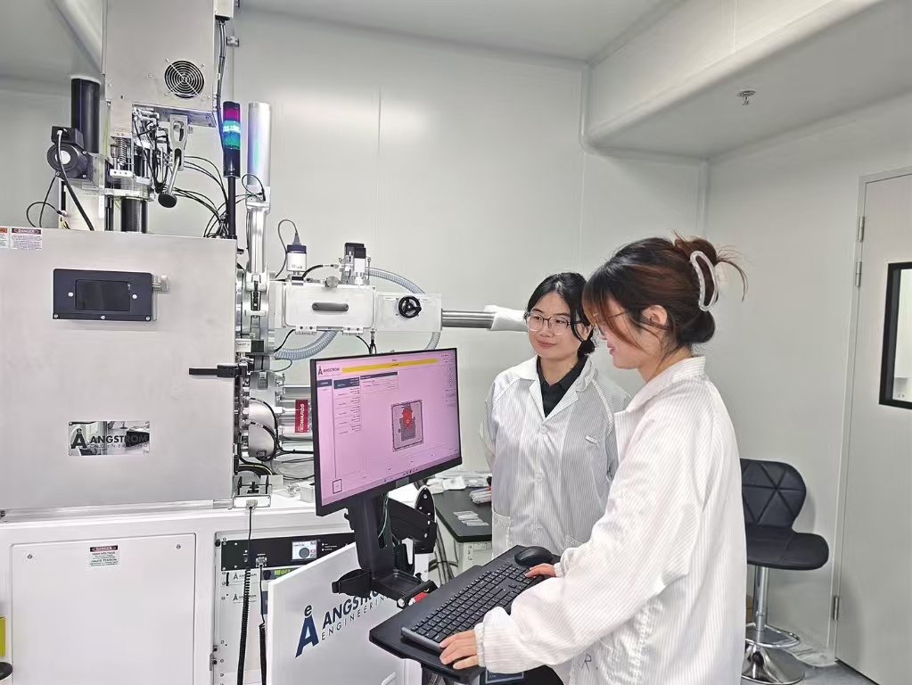 納米級氧化物薄膜,是構建“納米結構控光”技術的關鍵基礎材料。而這類關鍵材料的高效、精準制備,離不開全自動光學薄膜制備儀器的技術支撐。走進實驗室,全自動光學薄膜制備儀器透明的反應腔里,納米級的氧化物薄膜正一層層精準沉積。“以前在國外做光學薄膜,每蒸一層氧化物都像守著鍋等粥熟。”文雯說,沒有全自動設備時,每次沉積一層薄膜,設備都會因反應放熱導致腔體內溫度波動,必須有人守在旁邊,等溫度降到精準范圍才能開始做下一層。中途稍不注意溫度控制,整批樣品就可能因精度不達標而報廢。如今,學校為聯合實驗室采購了全自動光學薄膜制備儀器。學生只需在電腦上輸入每層氧化物的厚度、沉積速率、溫度閾值等預設參數,全自動儀器就會自己監控反應溫度,放熱時自動開啟冷卻系統,溫度穩定后再銜接下一層沉積,全程無需人工干預。“學校還幫我們把跨機構實驗的費用減半,大大降低了前期研發成本。”文雯說。