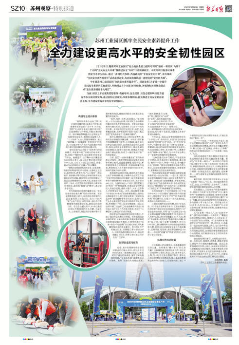 今年是蘇州工業園區的“全民安全素養提升年”。園區發布《關于進一步提升全民安全素養的實施意見》,明確規定5個方面16項任務,各板塊相關領域全面啟動“安全素養提升十大項目”。