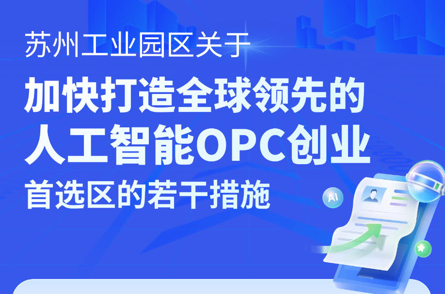 近日,蘇州工業(yè)園區(qū)發(fā)布《關(guān)于加快打造全球領(lǐng)先的人工智能OPC創(chuàng)業(yè)首選區(qū)的若干措施》,以一系列力度空前的“政策禮包”,前瞻布局“個人人工智能公司”(OnePersonCompany,簡稱OPC)這一創(chuàng)新業(yè)態(tài)。