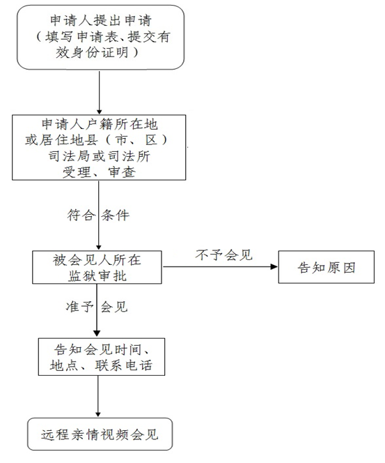 第七條:親屬、監護人要求遠程幫教會見監獄服刑人員的,可以向申請人戶籍所在地或居住地縣(市、區)司法局或司法所提出預約申請。預約應當說明:會見人數、姓名,與被會見人的關系、會見人的證件名稱、證件號碼,被會見人的姓名、罪名、刑期、服刑地點,申請會見的日期以及聯系方式等。