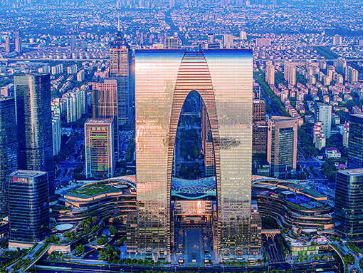 ▲這是8月30日拍攝的蘇州工業園區“東方之門”。本報記者李博攝